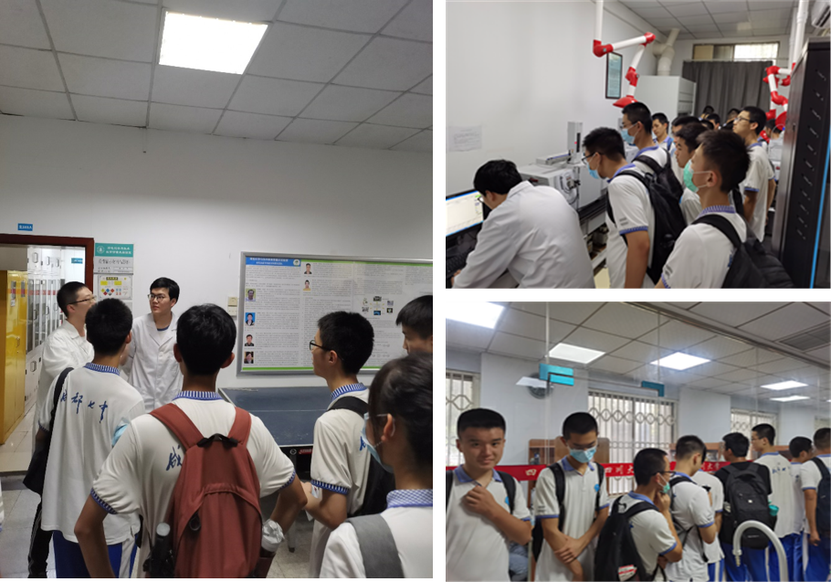 参观结束后,同学们基于目前的化学知识和概念,对实验室各种仪器和化学反应进行提问和讨论,实验室老师一一耐心解答,鼓励大家在高中阶段认真学习化学基础知识,为进入大学学习打下基础,也欢迎大家今后再次来实验室参观。本次参观化学实验室的校园体验日活动增进了七中同学对川大化学学科的了解,有效推动了本科招生宣传工作的开展。