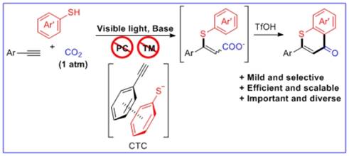 11. M. Miao, L. Zhu, H. Zhao, L. Song, S.-S. Yan, Li-Li Liao, J.-H. Ye*, Yu Lan*, Da-Gang Yu*, Visible-Light-Driven Thiocarboxylation of Alkynes with CO2: Facile Synthesis of Thiochromones. Sci. China. Chem. 2023, 66, 1457.