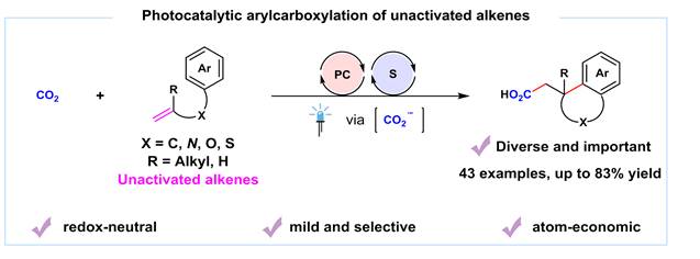 7. W. Zhang, Z. Chen, Y.-X. Jiang, L.-L. Liao, W.-Wang, J.-H. Ye*, D.-G. Yu*, Arylcarboxylation of unactivated alkenes with CO2 via visible-light photoredox catalysis. Nat. Commun. 2023, 14, 3529.