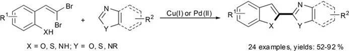 413) Xurong Qin, Xuefeng Cong, Dongbing Zhao, Jingsong You, Jingbo Lan,* One-pot synthesis of benzofused heteroaryl azoles via tandem C-heteroatom coupling/C–H activation of azoles. Chem. Commun., 2011, 47, 5611�5613.