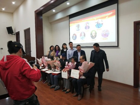 校友代表为获得日本色情片 第三届“桃李芳华奖”的老师颁奖,并献上鲜花,合影留念。表达了对老师们的感谢和美好祝福,祝愿老教师们身体健康,幸福安康!