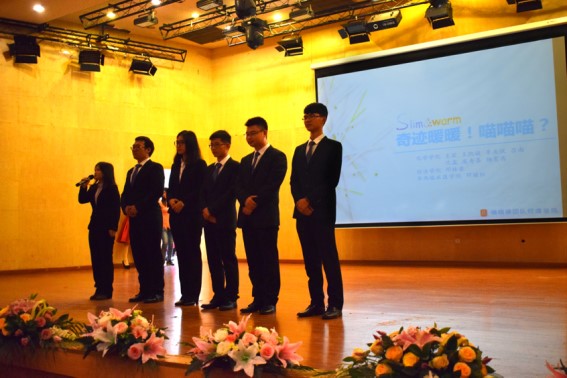 此次比赛是模仿公司里的产品论证会,参赛队伍分别是:遇见M.E.T团队,夕阳红团队,SAFOOD TECH团队和喵喵喵团队。第一阶段,各队伍阐述产品的概念产生、市场调查和产品理念、产品原理。遇见M.E.T团队着眼于环境问题,为我们带来了模块化废气处理系统;夕阳红团队则将目光聚焦在老人身上,研发了一款健康医疗手环;SAFOOD TECH团队关注食品安全问题,提出了便携型农药残留检测仪的概念;喵喵喵团队关注点则是我们的衣着问题,研发出新型保暖内衣“奇迹暖暖”。之后是精彩的拉票环节,各个团队新颖出奇的拉票表演节目精彩绝伦,比赛现场掌声热烈。经过评委老师们的投票,最终遇见M.E.T团队和SAFOOD TECH团队进入决赛,开始冠军的角逐。