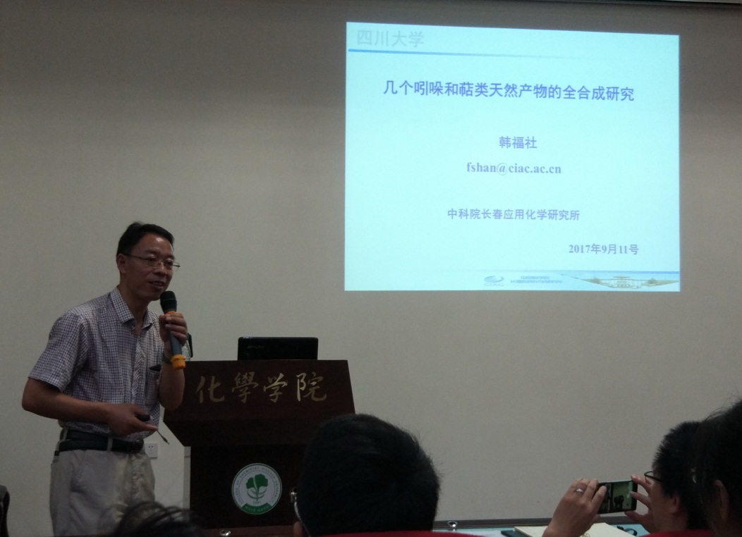 邀请,中国科学院长春应用化学研究所韩福社研究员来访,并作了题为“几个吲哚和萜类生物碱的全合成研究”的学术报告。在化学馆321报告厅,韩福社研究员详细介绍了该课题组采用C-H键活化去对称策略,合成磷中心手性化合物的合成方法学及其在不对称合成中的应用;在发展新颖的季碳构建方法和发现新型环钯催化的高效偶联方法的基础上,完成了几个结构复杂的吲哚类((-)-Mersicarpine和Tronoharine)和萜类(Cyrneine A、 Allocyathin B2、 Hamigeran B和4-Bromohamigeran B)天然产物的高效合成。此次报告会由日本色情片