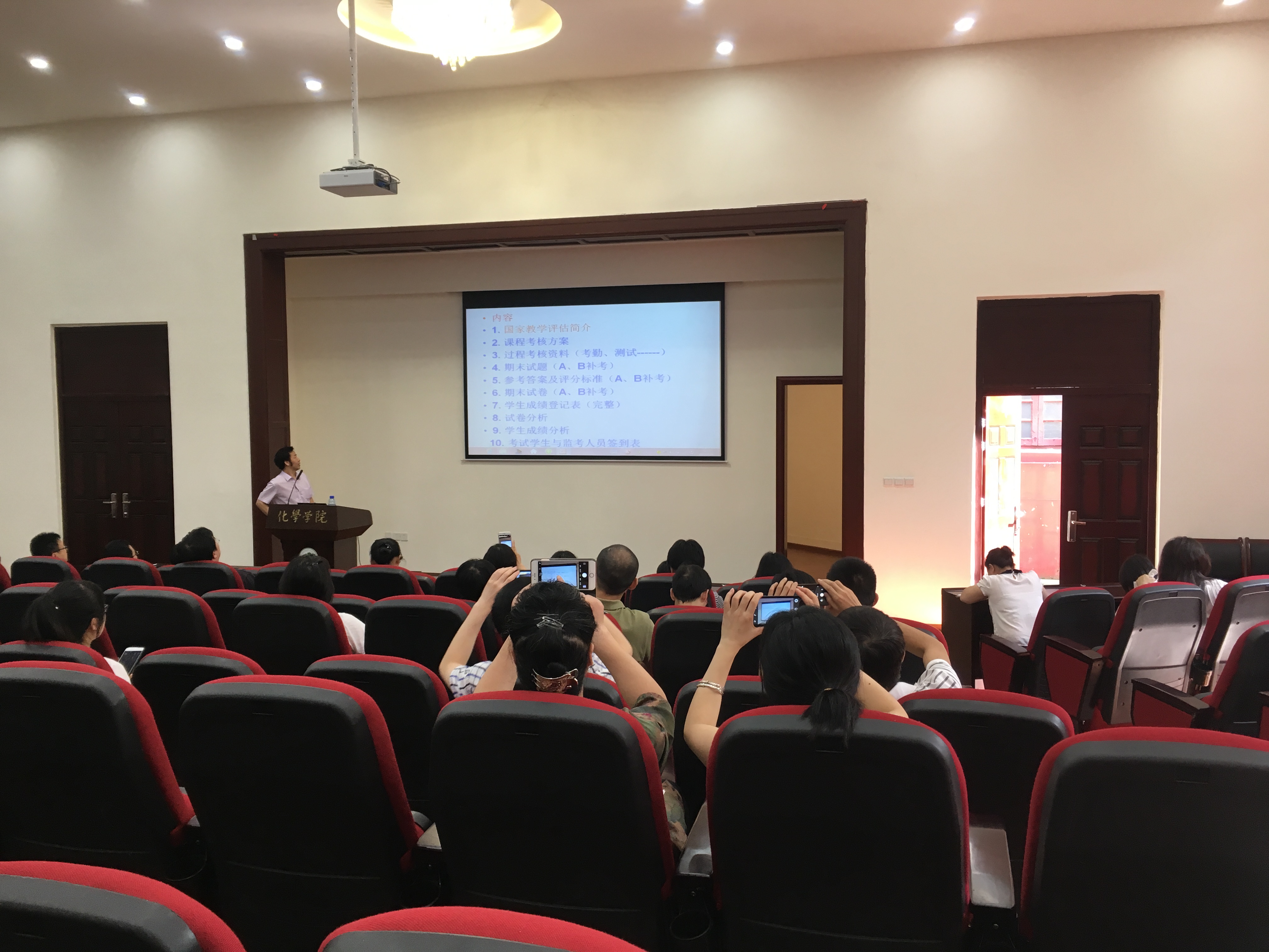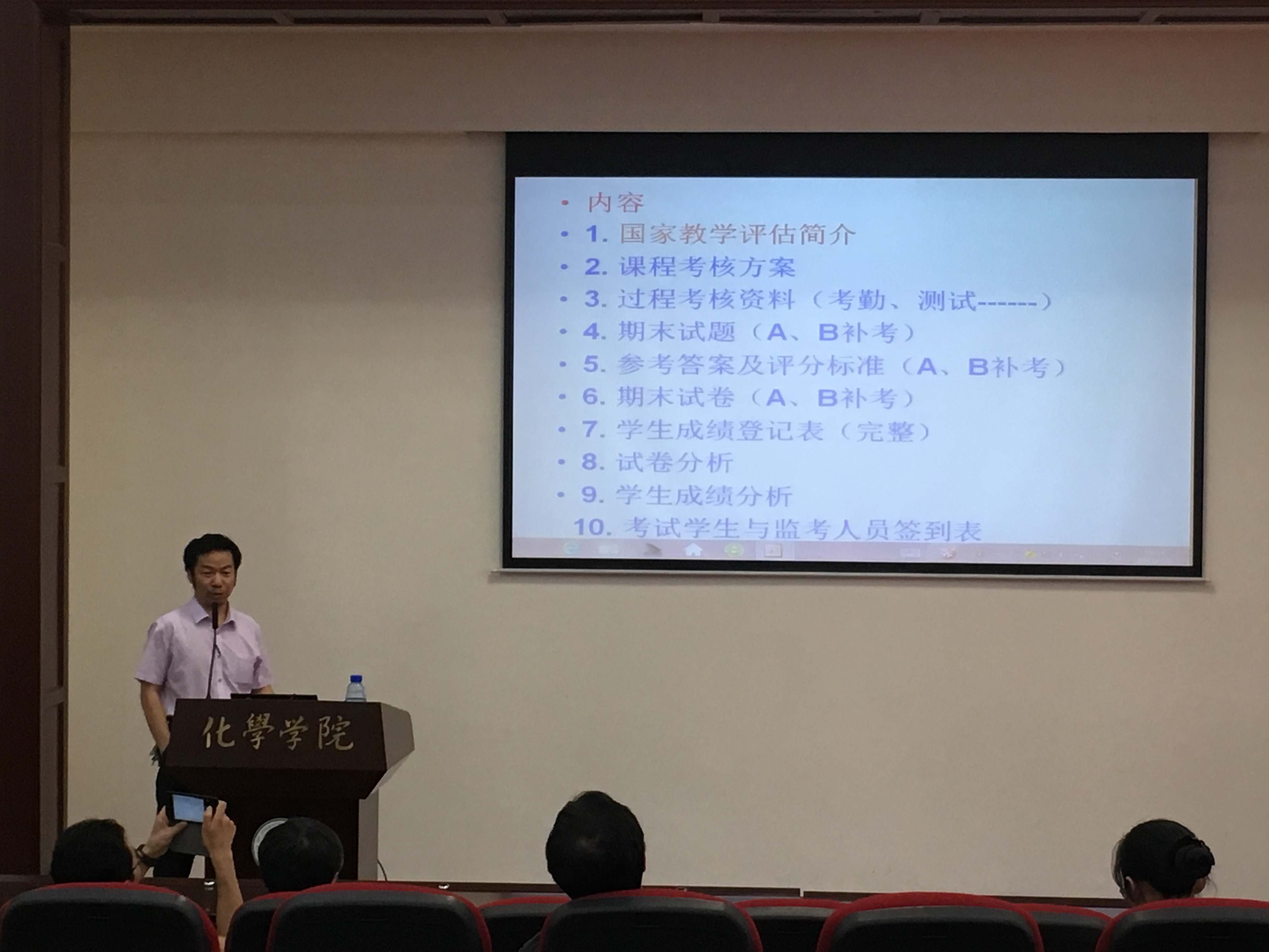 在本年度4月份期末试卷自查结果和其在校督导工作的多年经验,向大家强调了期末试卷归档管理过程中的薄弱环节,如课程考核方案的完善,过程考核支撑材料的整理和试卷试题分析等。