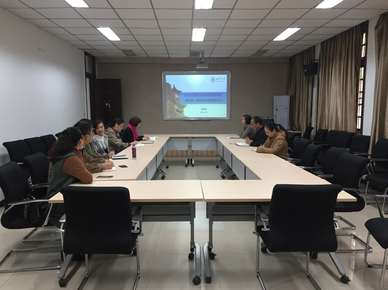 新世纪高等教育教学改革项目工程(第七期)研究项目中期检查经验交流于化学馆122举行,会议由教学院长李梦龙教授主持,教研室主任代表和项目负责人参加了此次会议。
