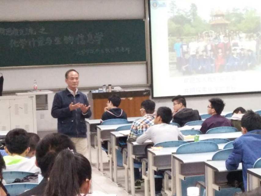副院长李梦龙教授,他为我们带来了一场关于化学与生物信息学的介绍的饕餮盛宴。全体2016级本科同学参加了这次讲座。