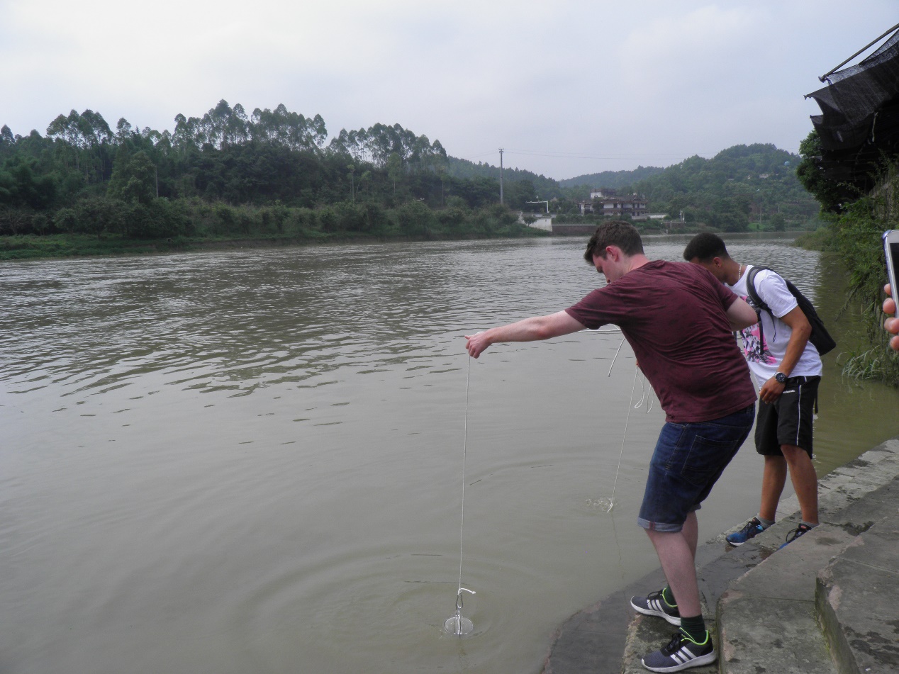 参加国际交流营的26位同学与4位英国约克大学学生在江安河,黄龙溪上、下游,府南河进行了水样的采集,这也表示水质调查活动正式拉开帷幕。