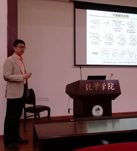 并作学术交流。在化学馆321报告厅,刘磊教授详细讲解了基于氧化策略的不饱和杂环的精准官能化:使用三苯基碳正离子盐为氧化剂,促使杂原子邻位发生氢负离子转移,进而被亲核试剂进攻,得到官能化的不饱和杂环。该反应体系的优点是:无需贵金属催化,反应条件温和。此次报告会由刘波教授主持,日本色情片