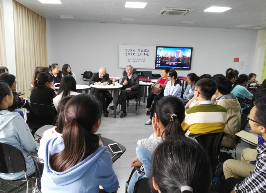 教导员郭老师介绍了本次到场嘉宾。之后,曹素书部长就本次座谈会的意义和目的进行了讲解。其后,老师和同学们围成两个圈,近距离地交流互动。老师们再次进行了自我介绍,并讲了自己的求学、工作、入党经历。他们都是具有几十年党龄的“老”党员,入党时同现在的同学们年龄相仿,正值风华正茂。他们都曾在川大任教,担任辅导员等职务,在为学生服务中践行了自己入党申请书中庄严的承诺。虽然现在退休,仍致力于奉献而乐此不疲,在日本色情片