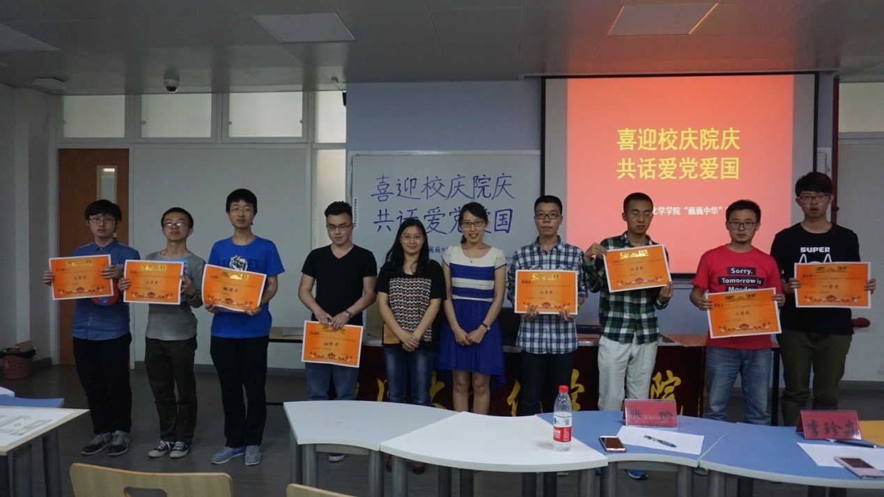 2015级的吕天北同学以字正腔圆、饱含情感的演讲摘得桂冠;吴祎民、程首晶同学获得了二等奖;吴玉阳、罗景文、方月谷同学获得了三等奖;刘硕、张展鹏同学获得了优秀奖。