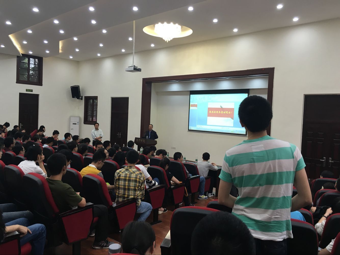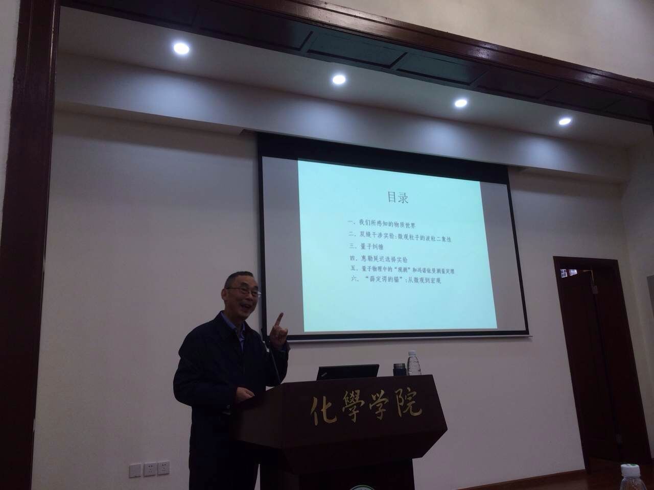 朱清时院士从我们所感知的物质世界、双缝干涉实验:微观粒子的波粒二象性、量子纠缠、惠勒延迟选择实验、量子物理中的“观测”和冯诺伊曼测量定理、“薛定谔的猫”:从微观到宏观六个方面,由浅及深的逐步为大家引入量子纠缠的概念,报告在热烈的掌声中落下帷幕。报告结束后,朱清时院士与几位学生就报告内容进行了热烈的交流和讨论。