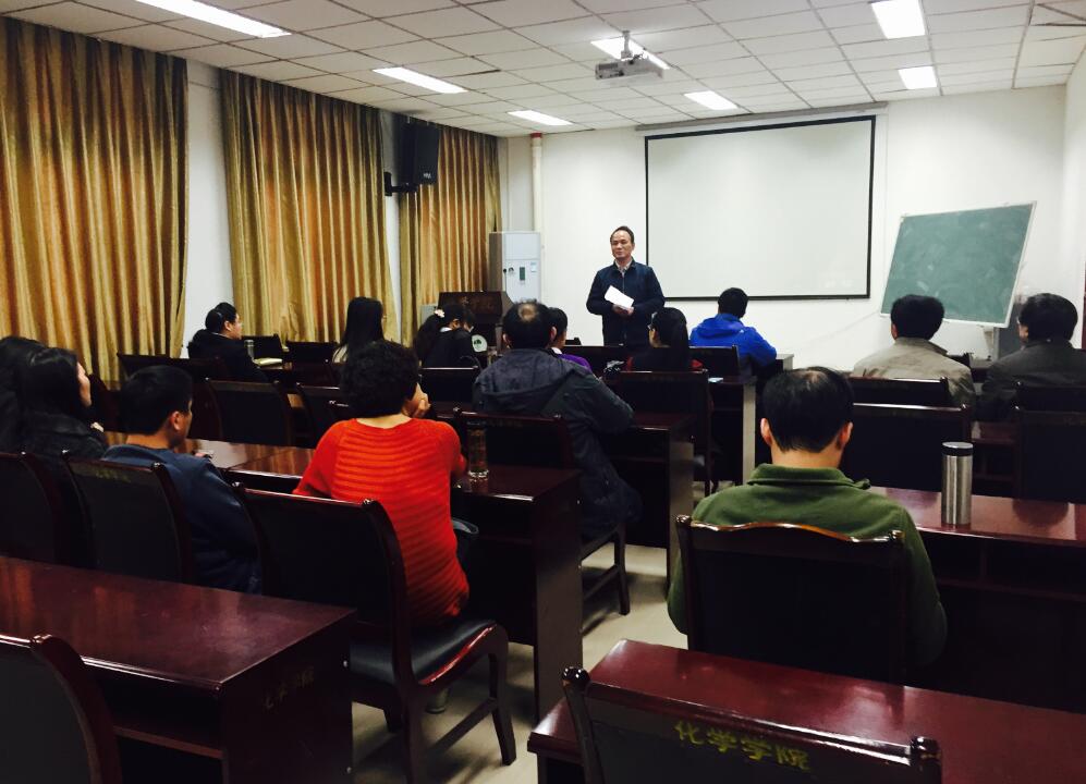 2016年3月4日,物理化学教研室于化学馆121举行了2016年度教学活动,与会老师围绕新学期常规教学工作、如何提高学生对物理化学相关课程的学习兴趣等主题进行了讨论,教学院长李梦龙教授出席了此次教学活动。