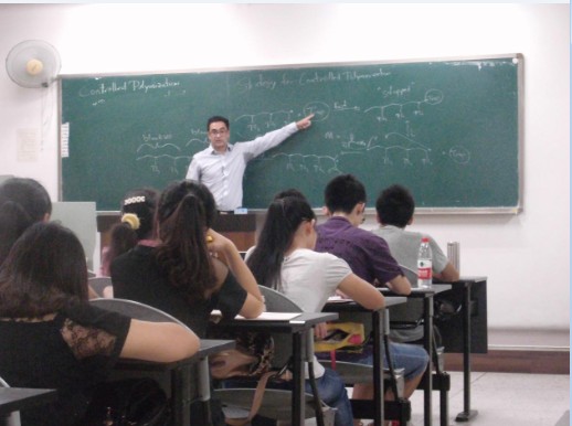 为给我校本科生带来内容和形式上充分的国际化体验,本门课程延续了在加州大学圣巴巴拉分校上课的传统模式,由两位教授共同讲授。两位教授授课内容各有侧重,风格多样,为学生带来多元化的学术交流感受。Bazan教授在课堂上图文并茂地为学生们普及了有机发光二极管,薄膜晶体管,有机太阳能电池等光电半导体材料领域的一些基础知识及基本原理,并展示了自己课题组在相关领域的优秀研究成果;Read教授通过列举生活中的实例让同学们对聚合物产生浓厚的兴趣,接着对聚合物的聚合方式、生长方式和终止进行详细讲解,层层推进。最后分析怎样合成准确的聚合物分子并介绍近年来实验室合成精确定义的聚合物在药物载体方面的应用。