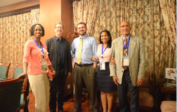 本科学生授课的8位外籍教授,感谢他们为国际课程周教学所做的精心准备。参加见面会的外宾有来自英国约克大学(University of York)的James Hanley Clark教授,美国加州大学圣巴巴拉分校(UC, Santa Barbara)的Guillermo Carlos Bazan教授和Javier Garland Read de Alaniz教授,美国布朗大学(Brown University)的Paul Gregory Williard教授,美国宾夕法尼亚大学(University of Pennsylvania)的Patrick Walsh教授及美国乔治亚州立大学(Georgia State University)的Joan Mutanyatta-Comar, Angela Maria Navarro-Eisenstein和Keith Pascoe教授。