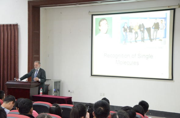 袁立华、高戈、Jason Cruma等教授及相关专业的研究生参加了此次报告。报告中,Gerhard Wenz教授就该课题组在环糊精领域的重要研究成果做了详细的讲解。报告内容丰富,Gerhard Wenz教授讲解深入浅出,激起了在座老师和同学的浓厚兴趣,报告在热烈的掌声中落下帷幕。报告结束后,Wenz教授与学院部分师生进行了激烈的讨论。