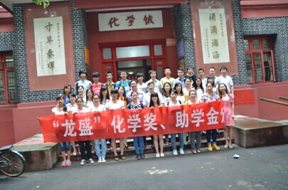 的感谢,也纷纷表示一定会认真学习,一定不忘记现在得到的这些鼓励和帮助,以后也会尽力回报社会,回报母校。最后,到场嘉宾和获奖同学在化学馆前合影留念。