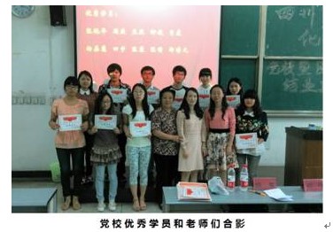 党委副书记谢均老师对本次培训进行总结。谢均老师简要叙述了本次培训班的培训历程,并就入党的意义做了阐述。同时,也向在座的入党积极分子表示党的队伍对新生力量有了更为严格的要求,希望各位入党积极分子继续学习党的先进知识,不断的完善自己,争取早日入党。之后,谢均老师宣布本次“入党积极分子培训班”优秀学员名单,在场嘉宾为优秀学员颁发荣誉证书,并合影留恋。最后,本次结业典礼在庄严的国际歌中圆满结束。