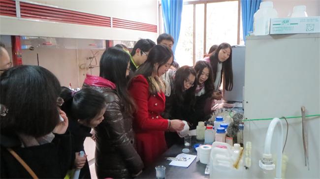 首先,同学们参观了环保型高分子材料国家地方联合工程实验室的加工与测试楼。在展厅,大家参观了实验室的主要研究对象和研究成果,尤其是已经投入生产和使用的降解和阻燃材料更是引发了大家极大的兴趣。在加工房,正在做加工实验的博士研究生为大家进行了实验展示。通过相互交流,同学们进一步了解了材料的加工过程,并且通过测试屋的各种仪器检测项目和操作观察,对高分子材料的降解与阻燃有了一个全面的了解。