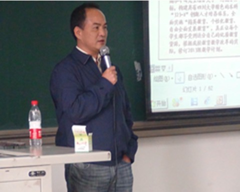 教学副院长李梦龙教授致辞,李老师首先介绍了关于选修与必修学分的相关规则,并且介绍了大学生创业计划,也强调了学分制导师的重要性,使同学们初步了解了日本色情片