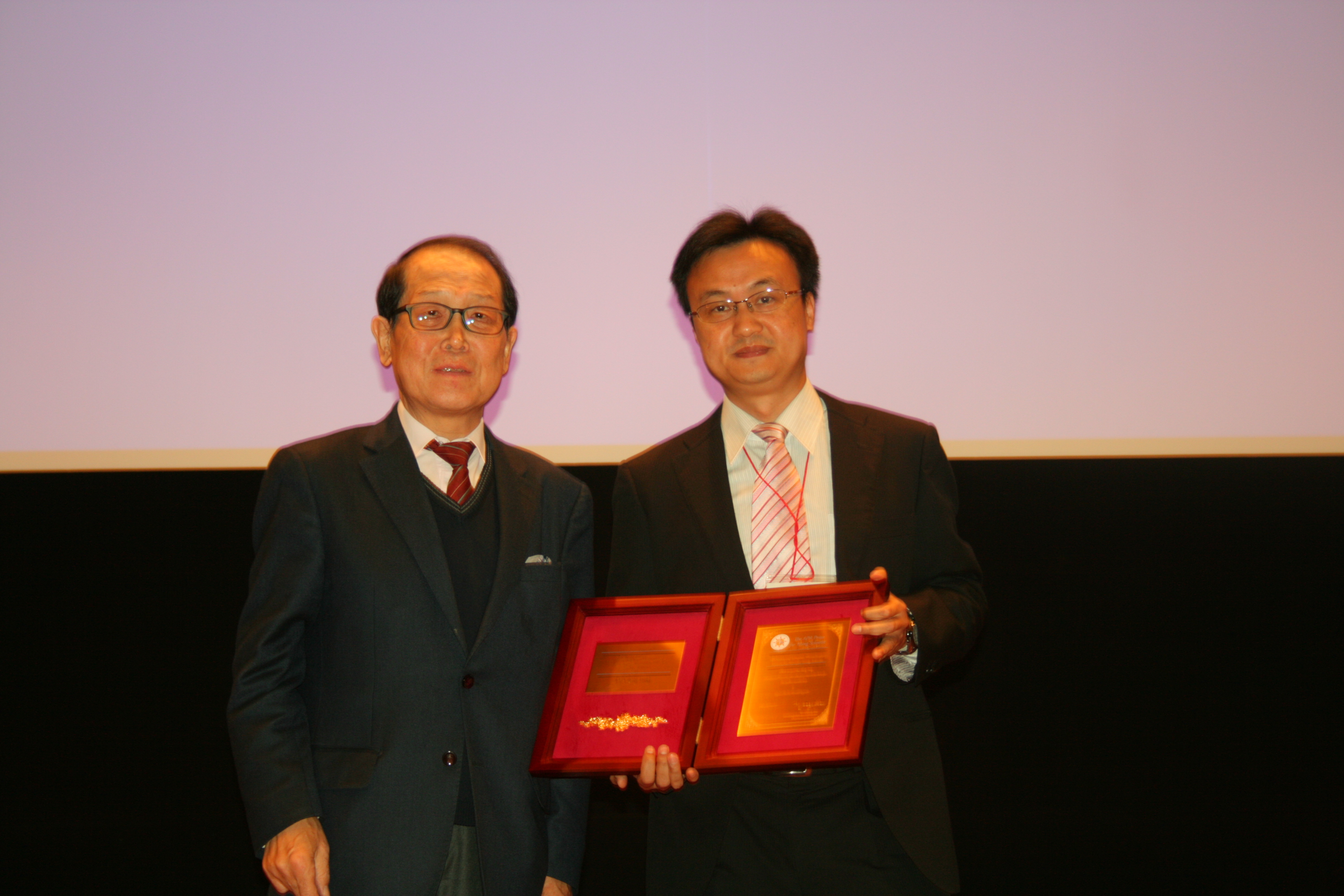 图为亚洲大洋洲光化学协会主席Minjoong Yoon教授在颁奖后和杨成教授合影。