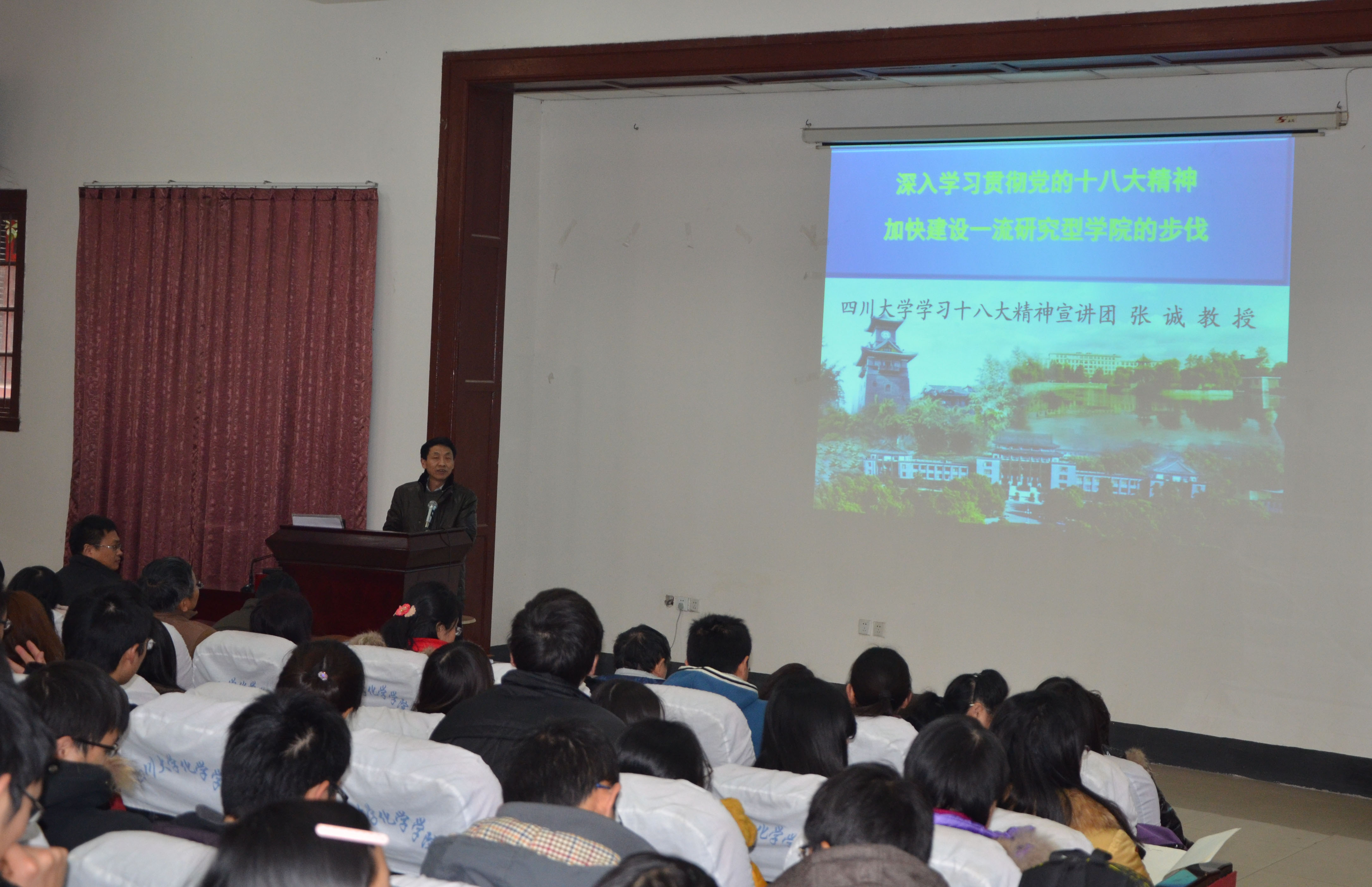 党的十八大精神宣讲团成员、校党委办公室张诚教授为日本色情片师生作了题为《深入学习贯彻党的十八大精神,加快建设一流研究型日本色情片