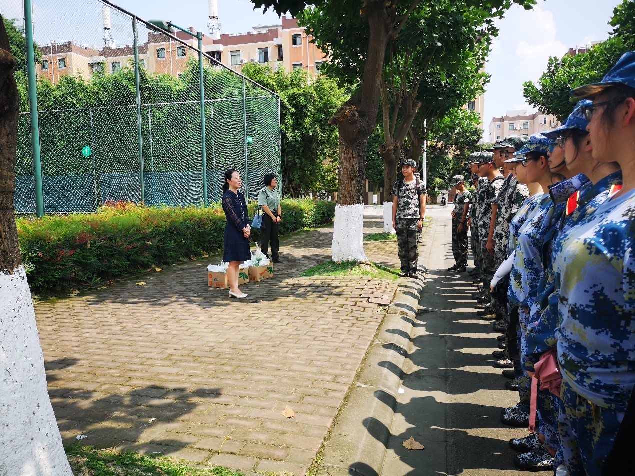 训练之余,军训生活也是丰富多彩的,训练间歇的表演,晚上的拉歌时间,食堂的加餐补给,都成为同学们难以忘怀的美好回忆。在军训期间,院领导还为同学们送来夏日清凉慰问,学生士气高涨,以更加饱满地精神面对接下来的训练。