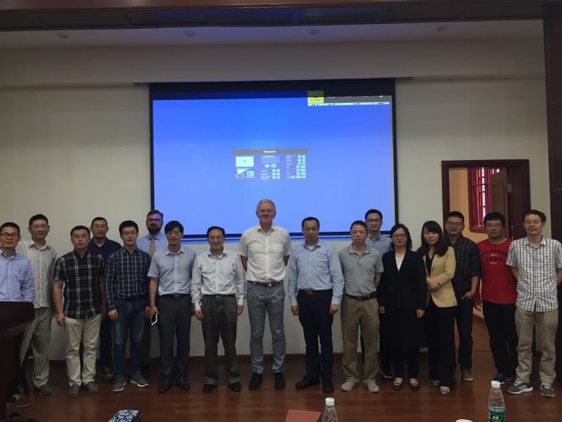 在报告中,Jorgensen教授首先对丹麦的地理与人文进行了简介,然后详细介绍了近年来他们课题组在有机催化方面取得的一些进展,主要包括脯氨酸衍生的仲胺催化剂通过烯胺、二烯胺、三烯胺、四烯胺及亚胺盐活化模式催化合成各种功能有机小分子和复杂有机分子等方面的研究,并对高阶环加成及氧化偶联等反应和有机催化的新型串联、多组分反应等进行了详细阐述。整场报告内容丰富,Jorgensen教授讲解深入浅出,激起了在座老师和同学的浓厚兴趣。在随后的自由提问环节,在座师生以该学科领域的前沿热点以及研究内容相关问题与Jorgensen教授进行了热烈讨论。报告在热烈的掌声中落下帷幕,结束后部分老师与Jorgensen教授合影留念。