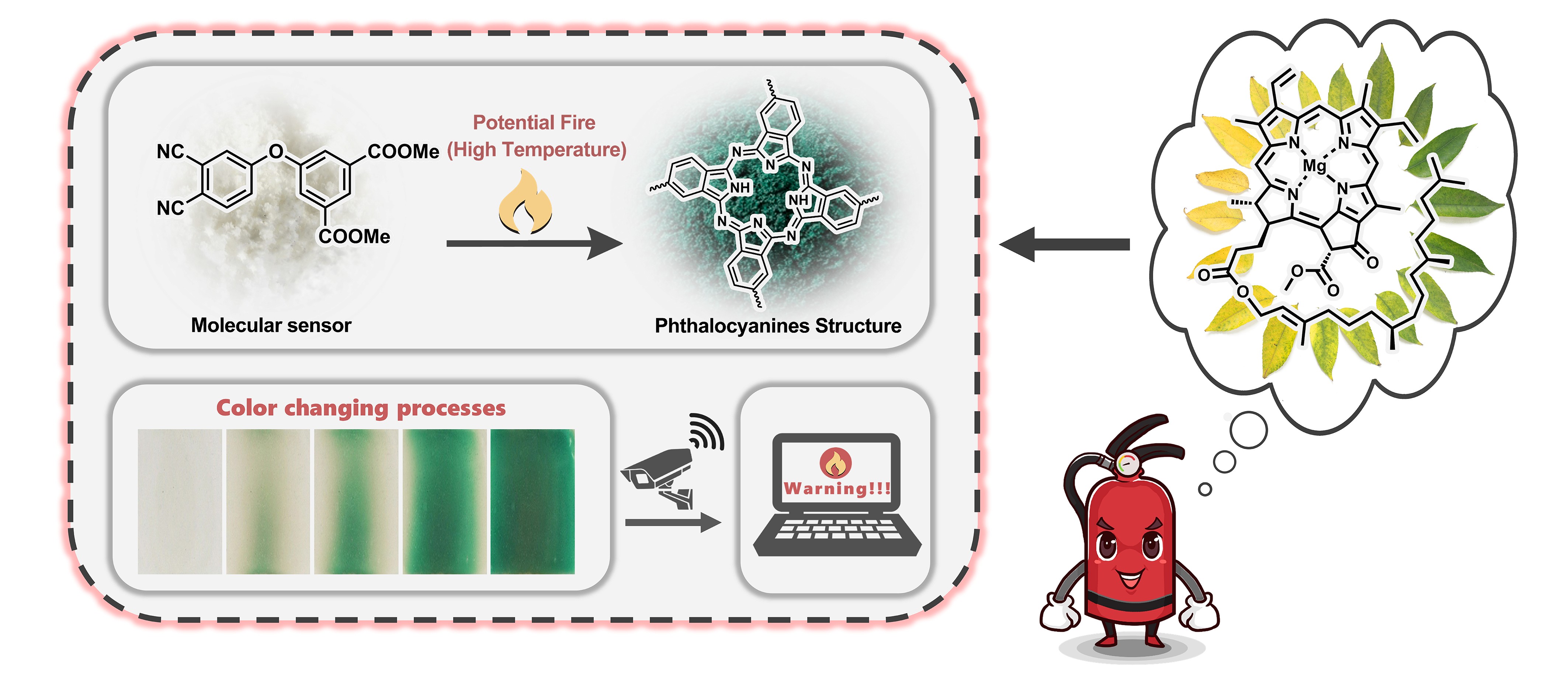 该研究工作“Bioinspired Color Changing Molecular Sensor toward Early Fire Detection Based on Transformation of Phthalonitrile to Phthalocyanine”发表在Advanced Functional Materials,并被Advanced Science News以“A Plant-Inspired Approach for Early Fire Detection”为题作为亮点报道。该研究为新一代火灾预警器件的开发与制备提供了全新思路,对推动早期/极早期火灾预警技术走向实际应用具有重要意义。该文的第一作者是博士研究生付腾,通讯作者是王玉忠院士和汪秀丽教授,该工作得到国家自然科学基金重点项目(21634006)等项目的资助。