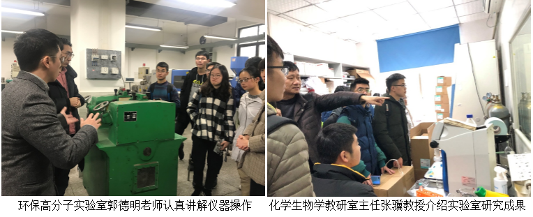 下午,同学们依次参观的是环保型高分子材料国家地方联合工程实验室与测试楼、新材料化学楼、放化馆和化学馆的各个实验室。整个参观过程秩序井然,师生互动良好。同学们切身感受到了学院实验科研氛围,对科研工作展现了极大的兴趣,积极踊跃发言、提问,在融洽的氛围中学习了知识、增长了见识。