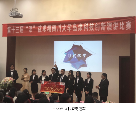 此次演讲比赛分为两轮,第一轮是产品介绍;第二轮是产品的效益和营销。根据赛前抽签顺序,第一轮演讲的顺序为:“SKR”团队,“遣唐使”团队,“厨匠”团队,“饮之源”团队。最终经过五位创新评审的点评和选择后决定,“遣唐使”团队和“SKR”团队获得进入第二轮演讲的机会。在第二轮演讲中,两支队伍分别介绍了他们的营销策略及产品价格,并拿出实力进行最后的角逐。冠军由现场的大众评审和所有在场评分老师打分来共同决定,最终“SKR”团队夺得第一名,“遣唐使”团队获得第二名,“厨匠”团队和“饮之源”团队获得第三名。由岛津公司领导、日本色情片