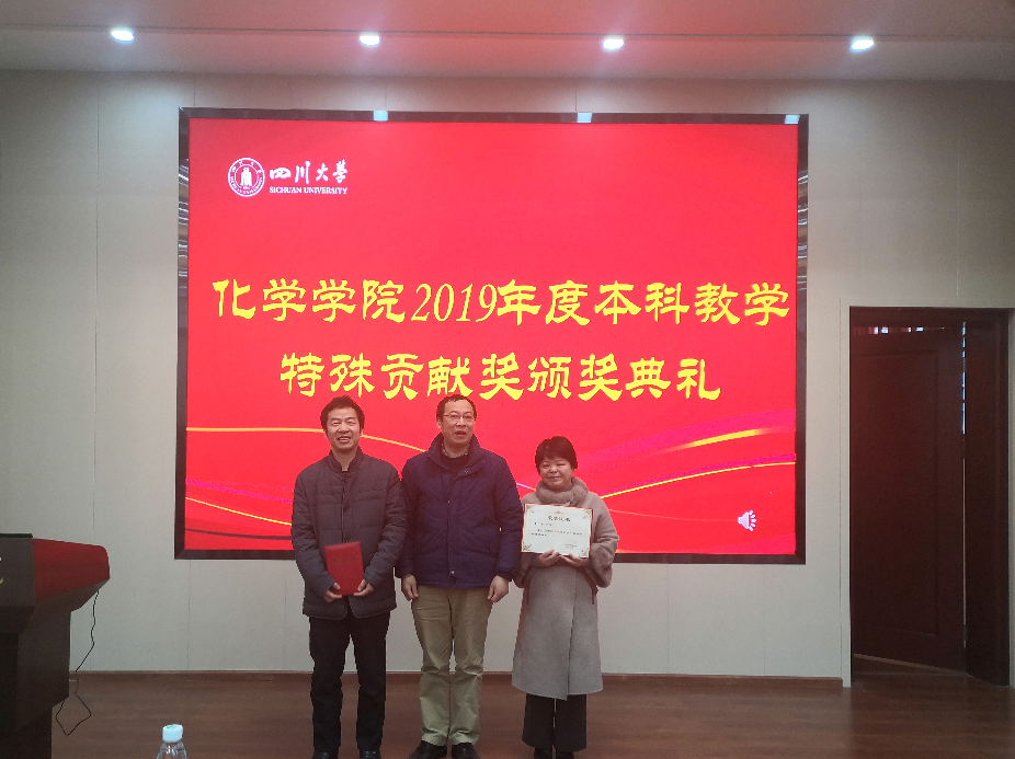 2019年度本科特殊贡献奖颁奖典礼,游劲松院长分别为获奖老师王玉良老师和夏传琴老师颁奖。