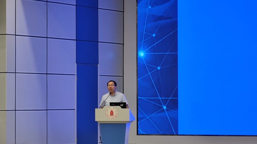 院长游劲松教授讲话。游院长指出,同学们作为新一代的化学人,首先要培养强烈的家国情怀。热爱小家也要热爱大家,在国际疫情形势依然严峻的如今,更需要培养同学爱国、爱家、爱校、爱院的精神。接着,为同学们讲解了如何选择科研方向。作为研究生,在选择科研方向时候,一定要做到“四个面向”,在选择好了科研方向后,必须勤奋努力,坚持到底,这样才能达到成功的彼岸。