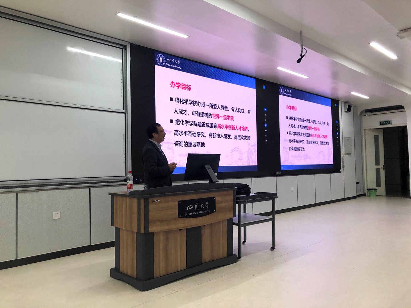 近几年取得的成绩向同学们做了系统全面地介绍,并在讲座中引述知名校友经历及成就引导学生对化学专业的正确认识,从自身奋斗引述到国家命运,告诉同学们“读书大是为了国家,小是为了自己”,鼓励同学们珍惜青春,肩负发展使命,心系国家未来,做栋梁之材。游院长勉励学生们要勤修品德,励志成才,努力为中华民族的伟大复兴做出自己应有的贡献。