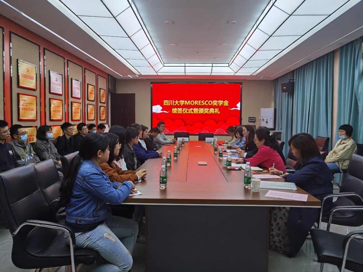 学子的期许,勉励获奖同学要以兴趣来驱动学习和科研,以后用所学知识回报国家、社会和家人。随后,刘英进先生和贾秀娥老师续签了为期四年的MORESCO奖学金捐赠协议,贾秀娥老师为刘英进先生颁发了捐赠证书。