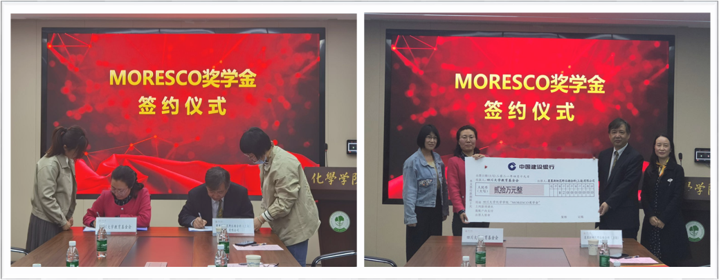 “MORESCO奖学金”续签仪式暨2019-2020学年度颁奖典礼在化学馆122会议室隆重举行。无锡莫莱斯柯贸易有限公司董事长兼日本株式会社MORESCO执行役员刘英进先生、无锡德松科技有限公司研发经理杨帆女士、日本色情片