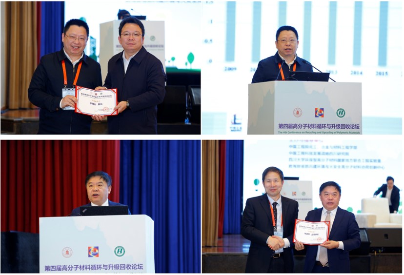 分管校领导褚良银副校长分别致辞。在“院士报告”环节,张立群院士和徐卫林院士分别做大会主旨报告,原安排在“学术报告”环节的王玉忠院士的报告也提前在该环节进行。本次大会还包括行业发展与政策报告、学术报告、产业技术报告、专题讨论等内容。中国塑料加工工业协会王占杰理事长、中国合成树脂协会塑料循环利用分会杜欢政会长、中山大学章明秋教授、中国石油化工股份有限公司石油化工科学研究院李明丰院长、金发科技李建军副董事长等来自行业协会、国内相关高校、研究院所、知名企业的15位相关领域的知名专家学者作了大会报告,报告与讨论内容精彩纷呈,让参会者受益匪浅。此外,还同时邀请了学界、行业协会及企业界专家参与了大会专题讨论,并与现场参会代表进行互动交流,现场科学讨论和交流的气氛热烈。