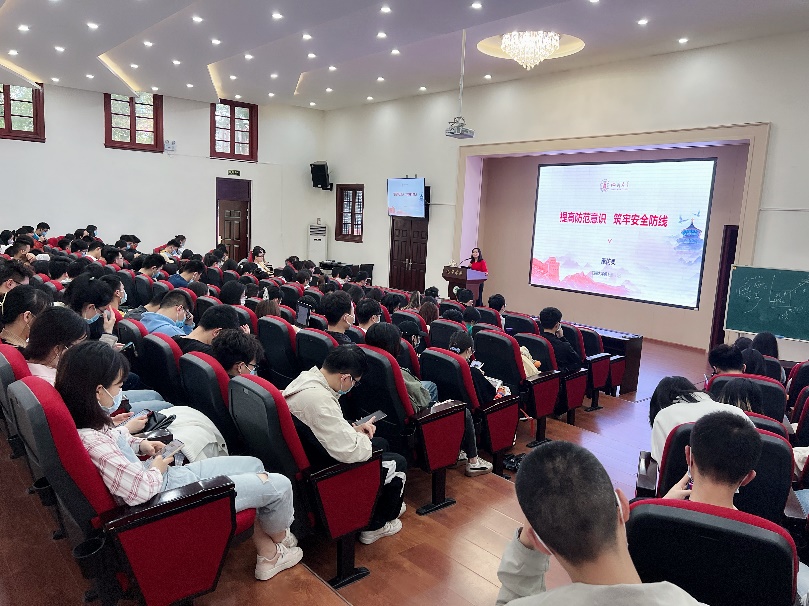 康老师以全面国家安全教育日的由来为切入点,详细介绍了国家安全观的概念、国家安全所包含的领域以及相关的法律法规,并结合具体案例深入解读国家安全知识。康老师特别强调,我国所面临的环境复杂多变,高校师生的安全意识不强,是最容易被不法组织利用的群体之一,并列举了危害国家安全行为,给同学们打好了“预防针”。