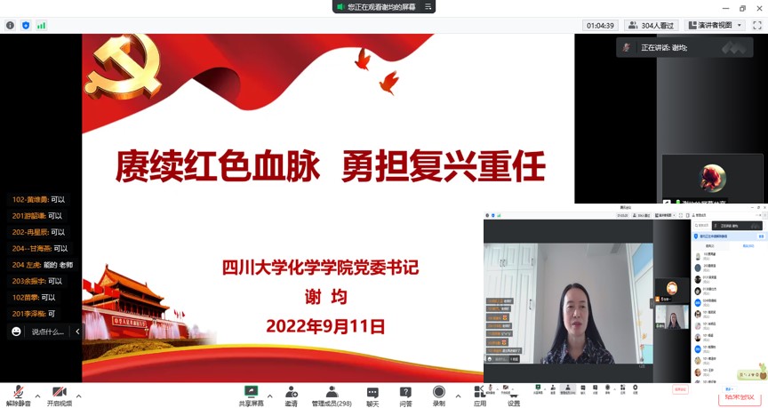 党委书记谢均、教学副院长郑成斌、副院长李坤为2022级本科新生进行“云上”开学教育。