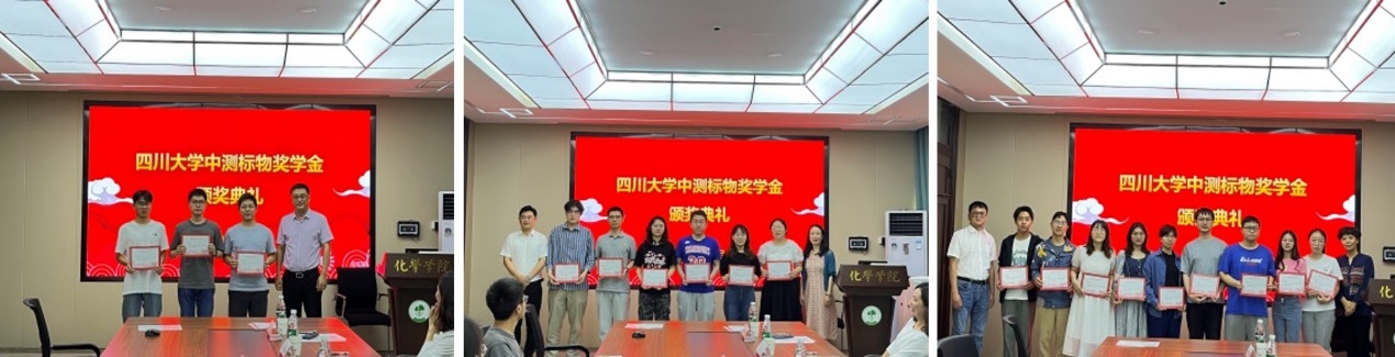 “中测标物奖助学金”颁奖典礼在化学馆122会议室举行。四川中测标物科技有限公司创始人方正、总经理杨嘉伟、总工程师张鹏辉,日本色情片