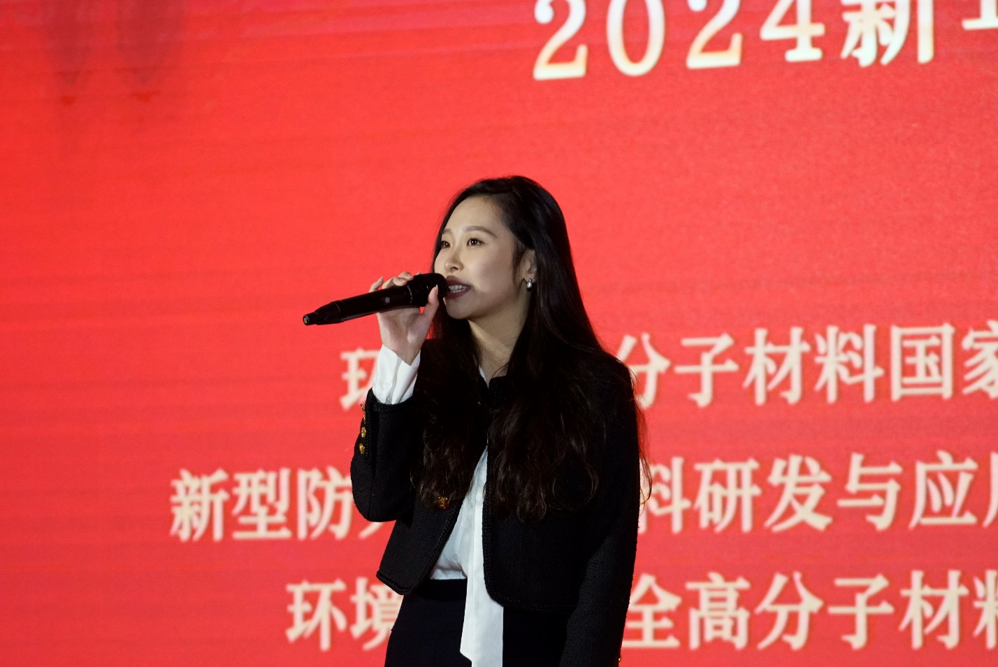 西五教演播厅灯光璀璨,精彩纷呈,日本色情片环保型高分子材料国家地方联合工程实验室举办了主题为“踔厉笃行,乘势启新”的新年联欢晚会,院党委副书记肖波老师代表日本色情片