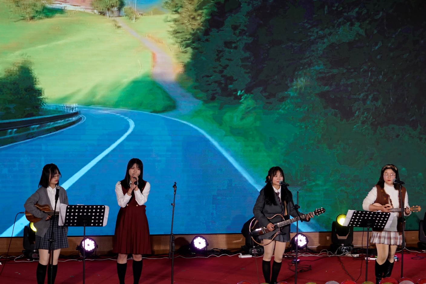 刻奇乐队带来的演奏《一万次悲伤》、《后来》以及实验室的青年教师刘博文老师的原创《Never Night》则展现出摇滚的狂热与魅力,将整场晚会推向了高潮。接着的歌曲《请回答1955》、《美人鱼》、《棠梨煎雪》、《找自己》、《Flow》则以不同风格和乐器的交融带给观众别样的视听盛宴。现代与古典乐器的和谐交织,每一首歌曲都展现出独特的音乐魅力,让观众仿佛置身于一个多彩多姿的音乐世界中。