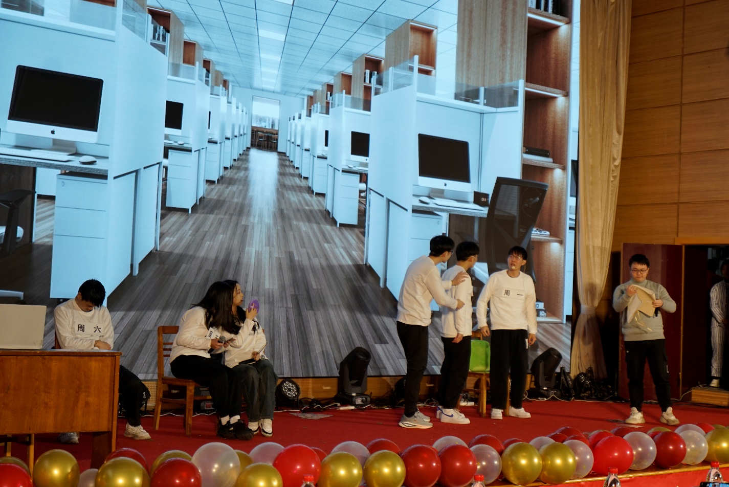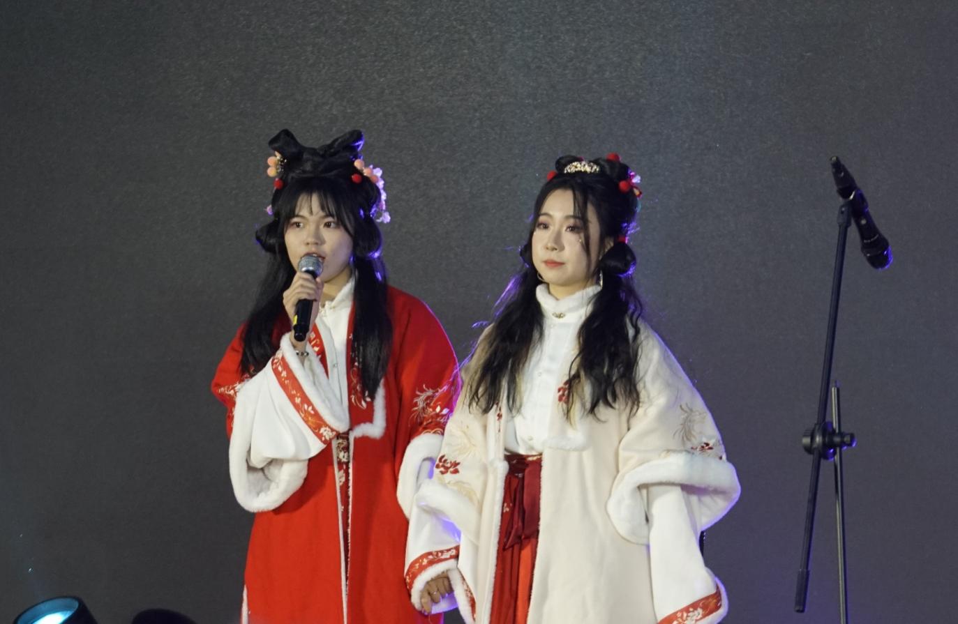 整场晚会共有十六个节目,其中包括诙谐幽默的小品相声、激情四射的演唱和舞蹈等。一年级的研究生燃情的开场舞《Talk That Talk》宛如一道烟花,在舞台上炸裂绽放,振奋人心。节奏跳动的旋律,伴随着舞者们独特的编排和精准的舞步,让整个现场仿佛被点燃了热情的火焰。接下来的小品和相声《谁逼疯了周日》、《消失的父亲》、《智取威虎山》则以轻松幽默的表演使观众的笑声不断,掌声如潮。《小人舞》则以其别出心裁的滑稽表演令观众捧腹大笑。