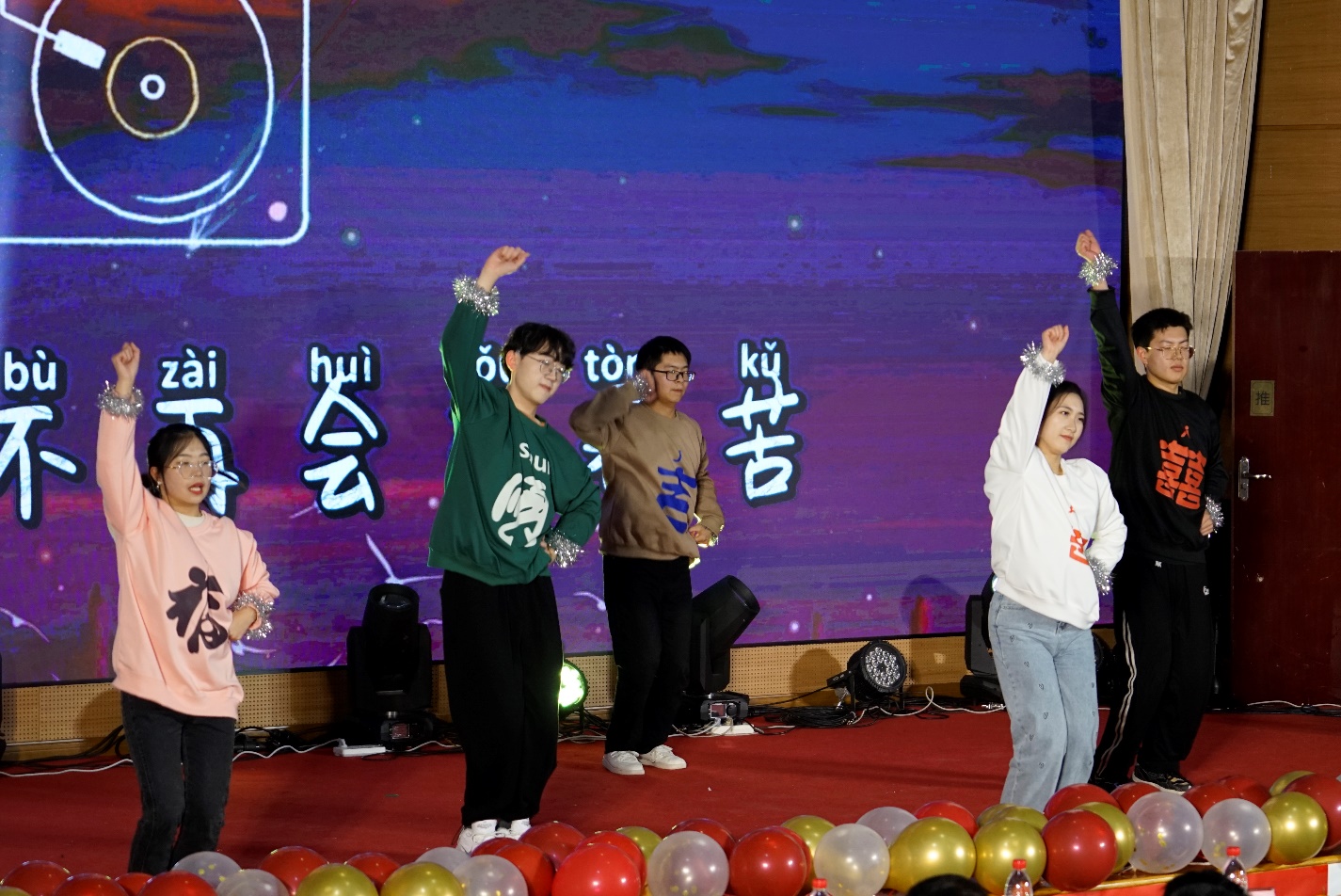 随后的歌舞节目《New Boy》、《Bar Bar Bar》、《隆里电丝》和歌舞串烧《时代的召唤》、《我们的节目》则展现了同学们青春活力的另一面。其中,《时代的召唤》用富有创意的方式将童年记忆与科研精神融合,将高分子材料的循环与升级回收体现在学生们的舞蹈编排中,展现了科研工作的轨迹和发展历程,成功引起大家的共鸣,成为整场晚会的一大亮点。