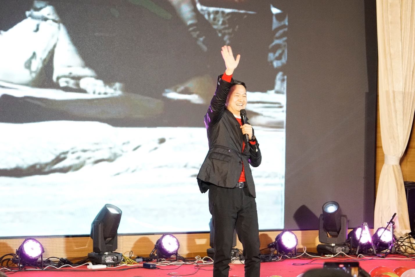 被晚会现场的热情所感染,合作企业苏州维龙集团的黄锋董事长即兴发挥,给大家献上《回到拉萨》的独唱歌曲,融汇着浓郁藏族民歌气息的歌声,回荡在整个演播厅,仿佛带着大家一起来到了西藏,欣赏美景。实验室的芶思绮青年教师也为大家带来了独唱《Set Fire To The Rain》,缓缓而又炽热的情感在歌声中交织,响彻会场。