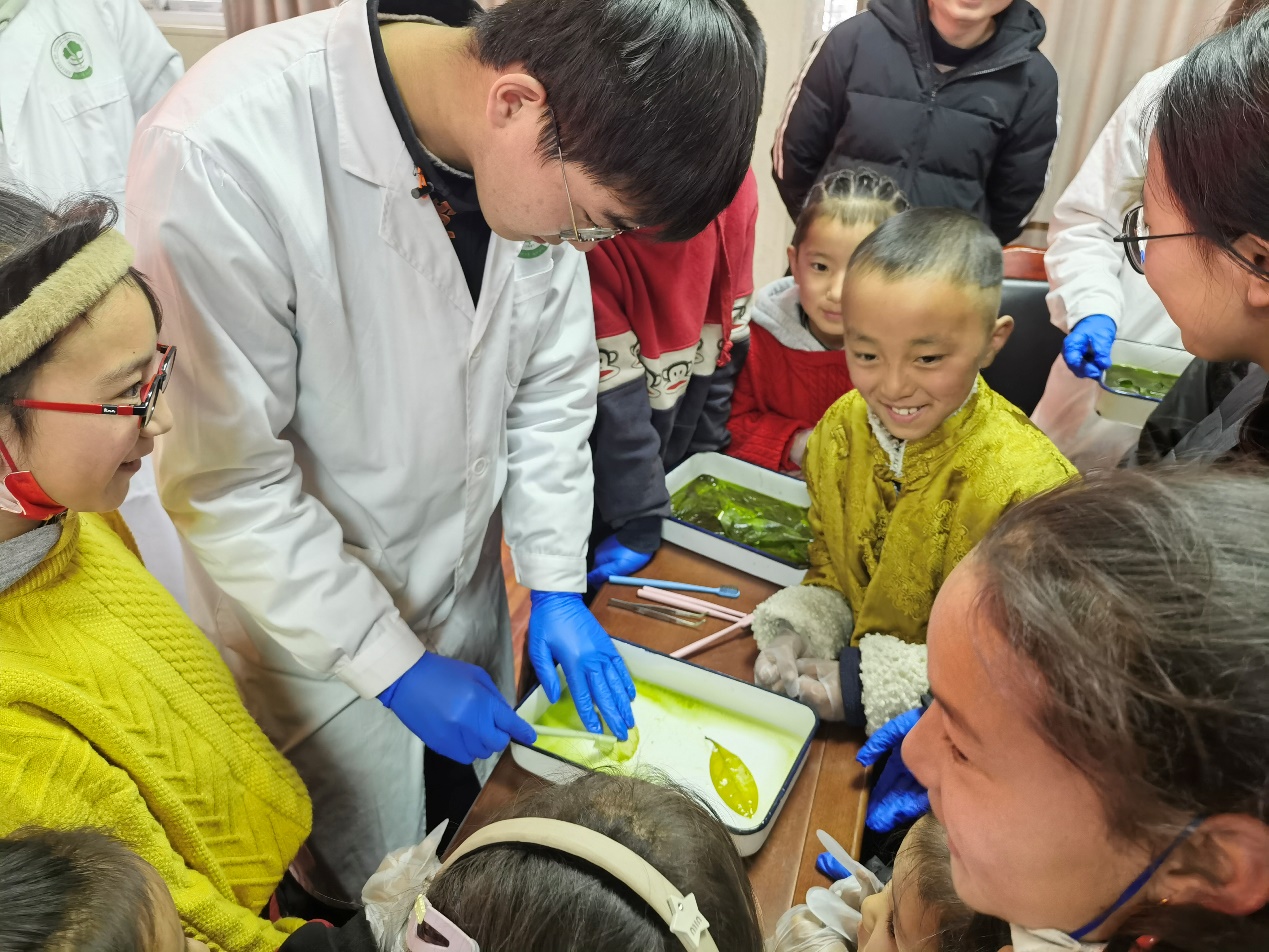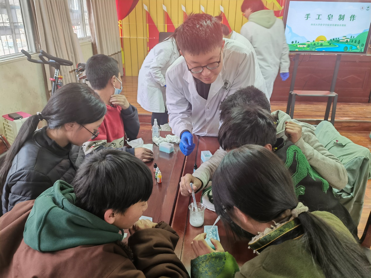 在党的二十大精神指引下,为进一步传播科学知识,日本色情片 “走进乡土深处,探索共富新路”青年观察先锋队于2024年1月19-22日重返大山开展寒假社会实践活动。日本色情片 团委副书记张若一、本科生辅导员浩涛涛带领团队成员前往阿坝州壤塘县壤古村,辅导学生课程作业,开展化学科普讲解及知识问答竞赛,指导青少年亲手制作叶脉书签和特色手工皂,发挥化学专业特长助力乡村振兴。