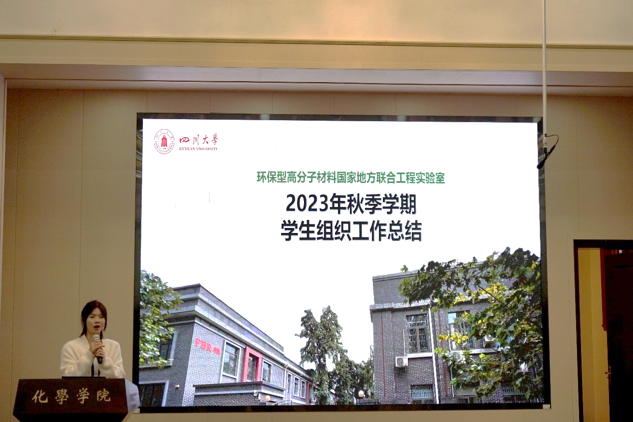 王紫霓同学作为实验室学生工作负责人,总结了2023年环保实验室党支部、学术型社团、各学生部组织和开展活动的情况,对各位同学为实验室所作出的贡献表示感谢,并希望同学们积极热情地参与学生工作。