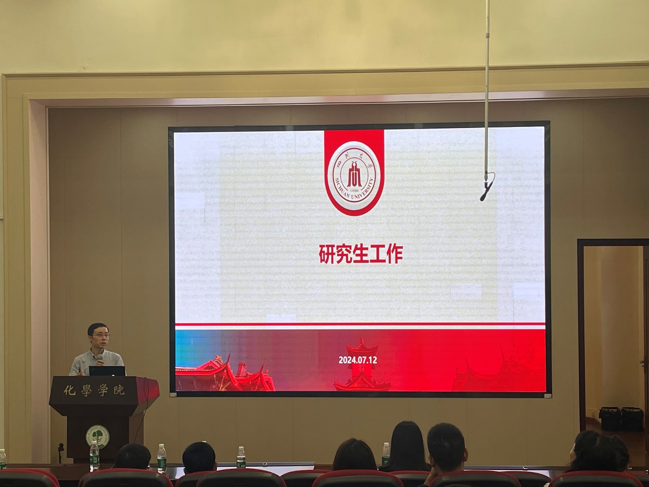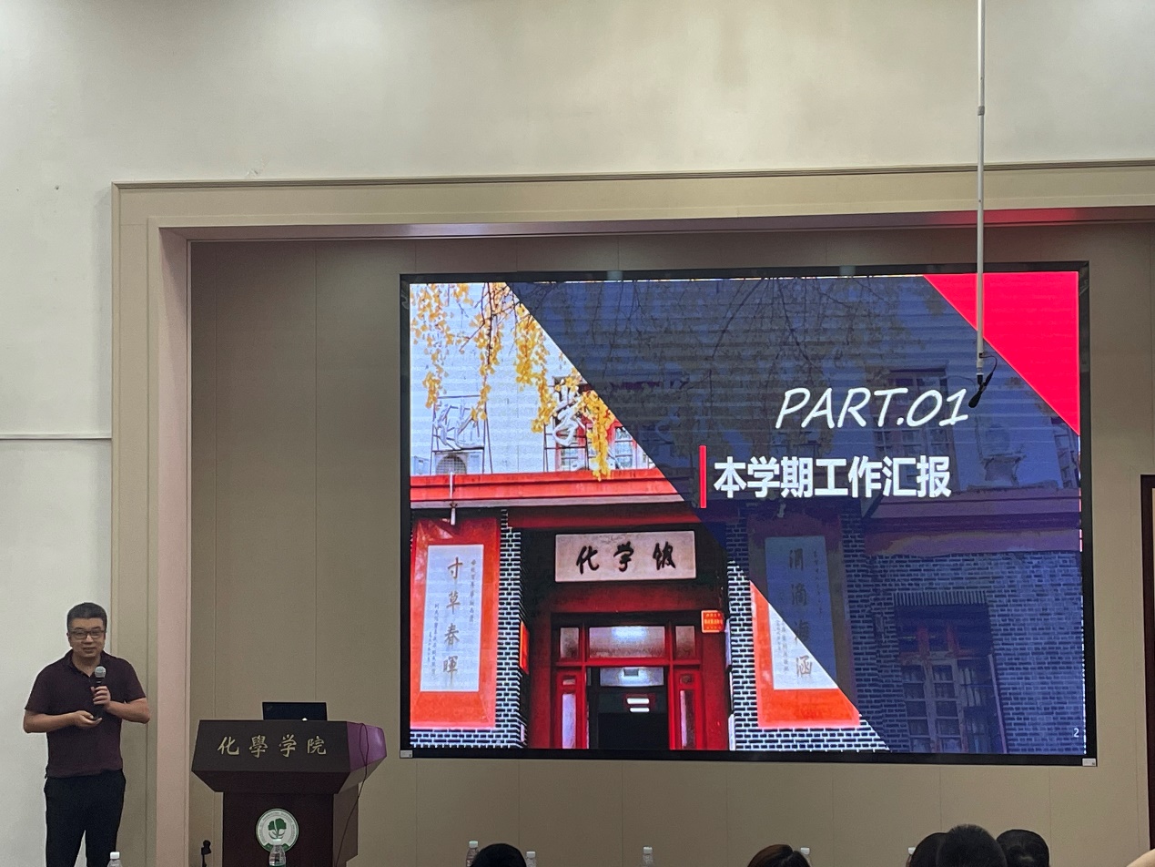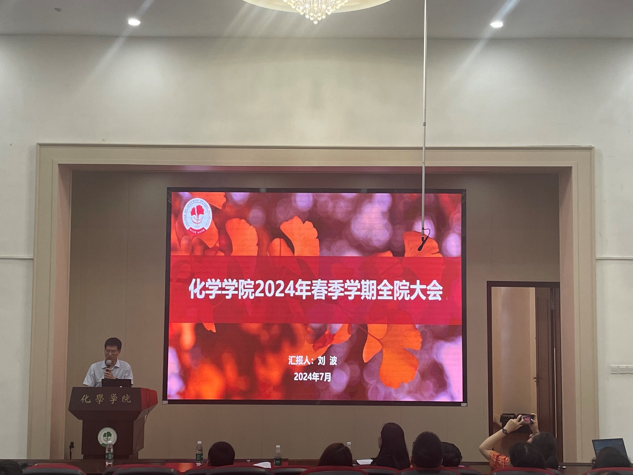 在学科建设、人才队伍、学生培养、科学研究、管理服务等各项工作中取得的成效,并对推进化学学科进ESI万分之一学科的目标进行了重点的解读,对下一阶段人才引进工作做了布置,对暑期实验室安全工作提出了要求。