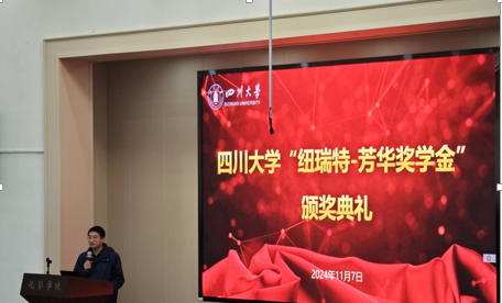 放射化学学科发展的持续支持表示了衷心感谢。他激励在场的学生们要勇于探索、深入科研,为国家和社会贡献力量。他提到,当前放射化学学科正处于蓬勃发展的阶段,学生们拥有广阔的发展前景,“纽瑞特-芳华”奖学金的设立正是为了鼓励学生们在遇到困难时不轻言放弃,持续为国家、人民和社会贡献自己的力量。