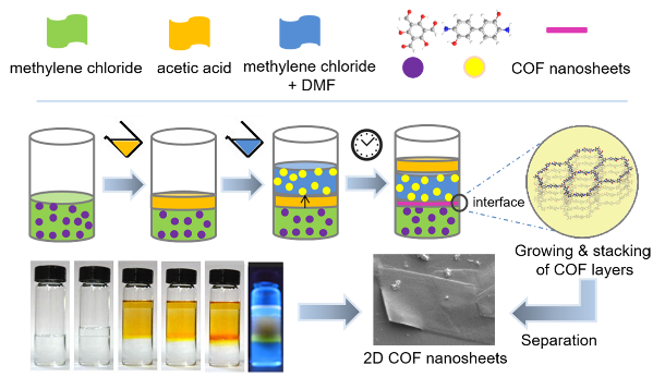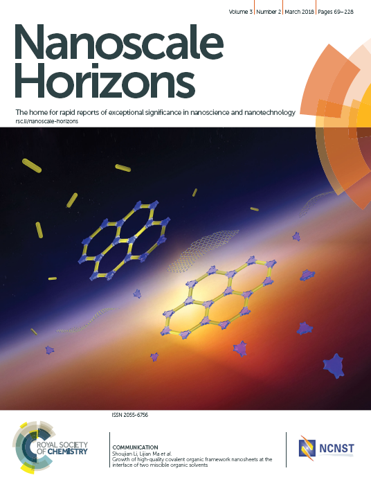 12. Yang Li, Meicheng Zhang, Xinghua Guo, Rui Wen, Xing Li, Xiaofeng Li, Shoujian Li*, Lijian Ma*. Growth of high-quality covalent organic framework nanosheets at the interface of two miscible organic solvents. Nanoscale Horiz., 2018, 3, 205–212. (DOI: 10.1039/c7nh00172j) (Front Cover)