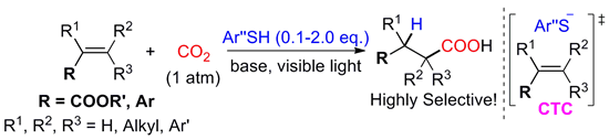 7. W. Zhang, Z. Chen, Y.-X. Jiang, L.-L. Liao, W.-Wang, J.-H. Ye*, D.-G. Yu*, Arylcarboxylation of unactivated alkenes with CO2 via visible-light photoredox catalysis. Nat. Commun. 2023, 14, 3529.